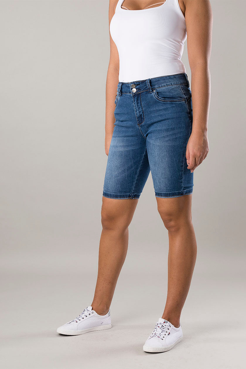 Deze blauwe korte dames jeans is een slim fit short met stretch. Doordat deze spijkerbroek uit 71% katoen, 27% polyester en 2% elastaan bestaat, draagt deze jeans erg comfortabel. De korte spijkerbroek is voorzien van een YKK rits en vier zakken.