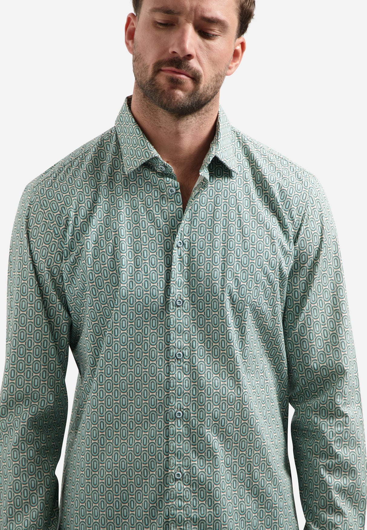 Op zoek naar een eyecatcher voor je garderobe? Dit overhemd met allover print geeft elke outfit een opvallende twist. De moderne pasvorm en soepele stof zorgen voor optimaal draagcomfort, zowel casual als stijlvol. Dit overhemd is gemaakt 97% katoen en 3% elastaan.
